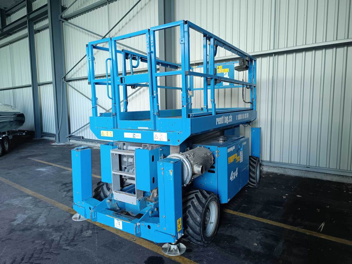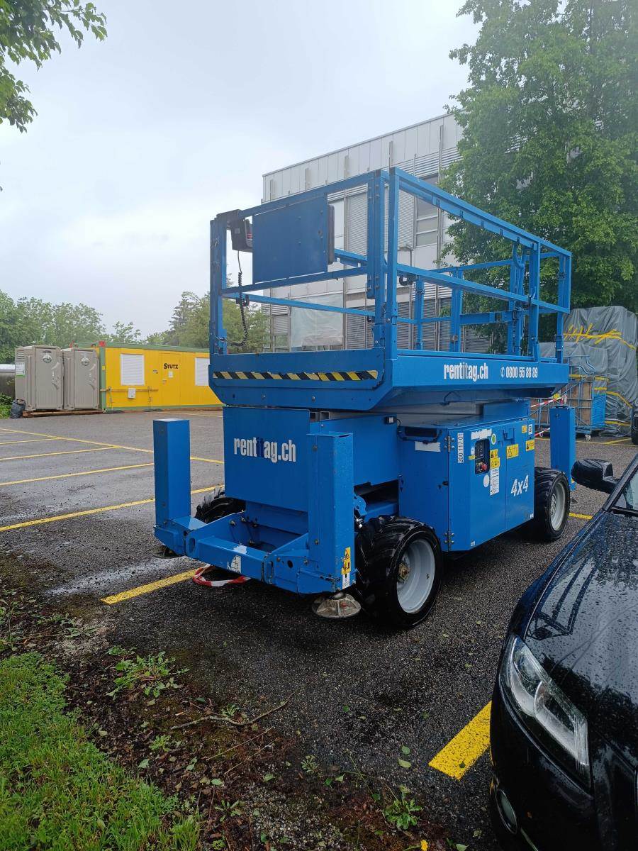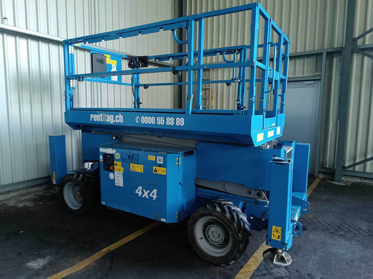 Die Genie GS-3369 RT, Baujahr 2014, ist eine robuste und leistungsstarke Geländescherenarbeitsbühne mit Allradantrieb, Dieselmotor und einer Arbeitshöhe von bis zu 11.75 Metern. Sie eignet sich ideal für den Einsatz auf unebenem Gelände, in der Industrie, im Hochbau, auf Baustellen und bei Ausseneinsätzen, bei denen eine grosse Plattform und hohe Tragkraft gefragt sind.