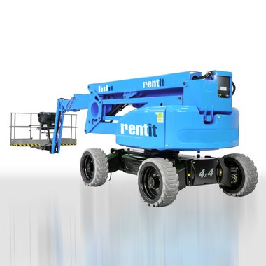 Rein Elektrische Arbeitsbühne mit 28m Arbeitshöhe und grosser Reichweite von bis zu 19m. Dank kraftvollem Antrieb auch für den Aussenbereich gebaut.
